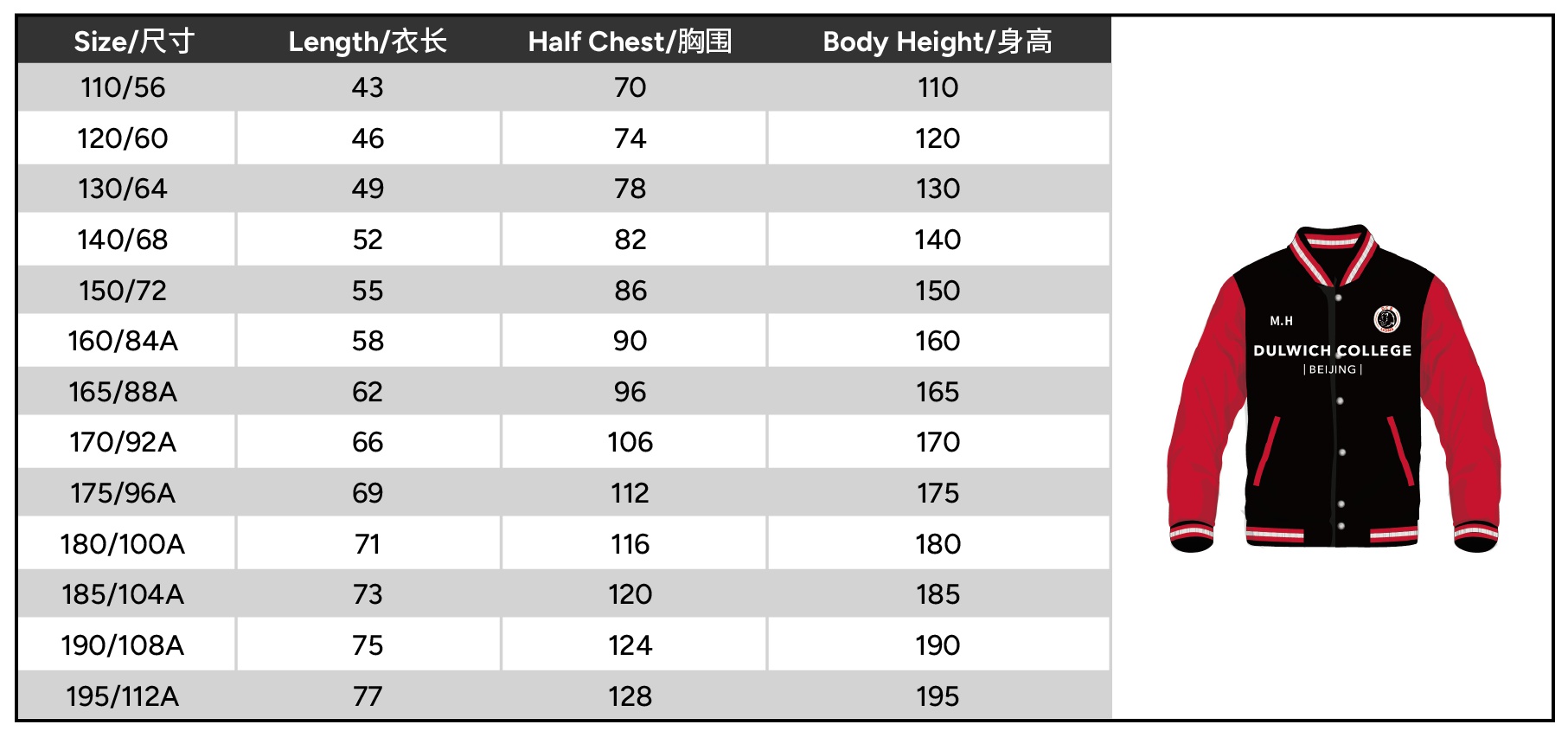 Size 110 or 120 or 130 or 140 or 150 or 160 or 165 or 170 or 175 or 180 or 185 or 190 or 195