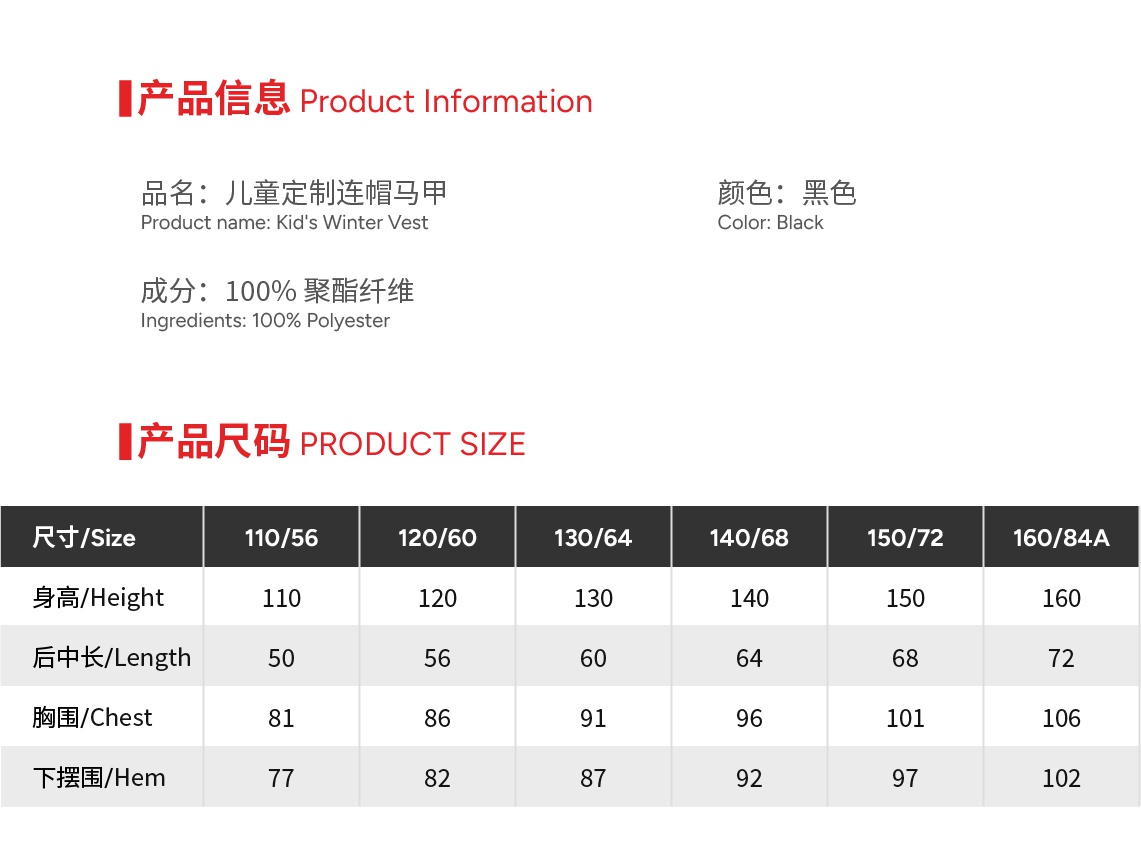 Size 110 or 120 or 130 or 140 or 150 or 160